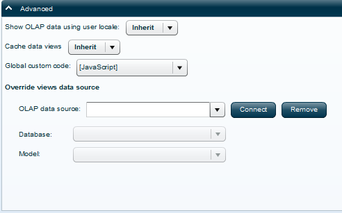 You can change the data source of the views that will be used by the application’s users by selecting an OLAP Data Source, Database and Cube, and clicking the Connect button.