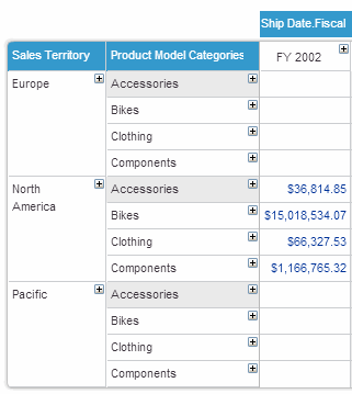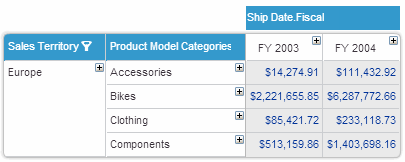 In the following example, the Europe member has been selected.