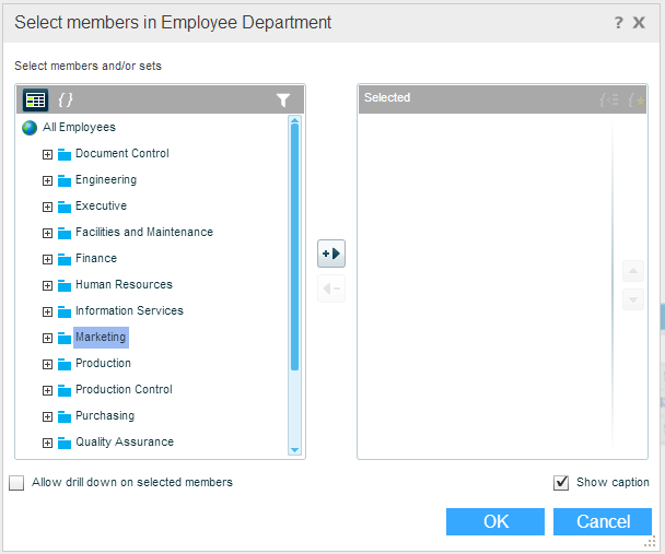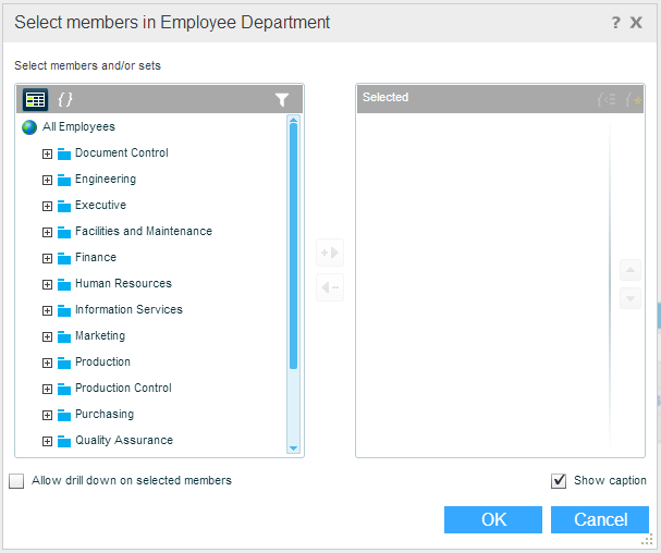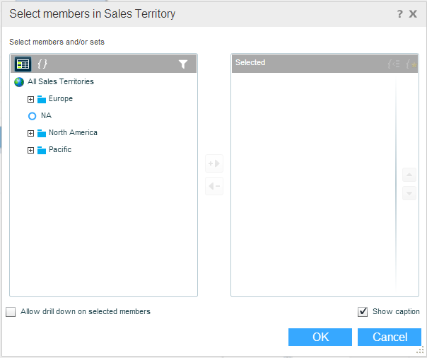 Select Allow drill down on selected members if you want to allow drilling down to lower levels of hierarchy for the selected members.