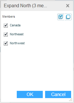 Member Selection allows you to focus on specific data by displaying only selected members on the grid and the chart, and hiding the others. Member Selection can be applied only to members from the same level.