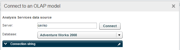 Enter the name of the Analysis Services database server and click Connect to connect to the server.