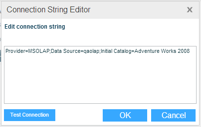 Edit the string and click Test Connection to test the connection. The system indicates whether or not the connection is working.