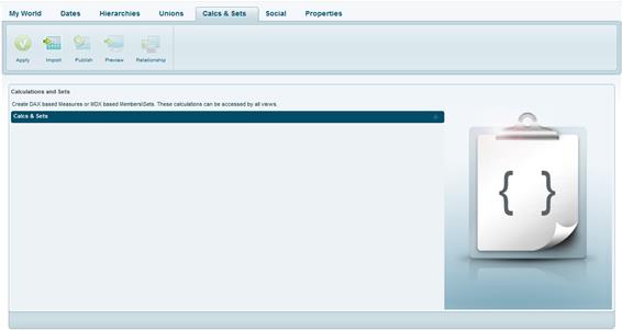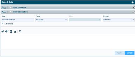 Via the Calcs & Sets tab, you can create calculated measures based on DAX, and calculated measures, members and sets based on MDX.