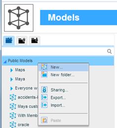 Model creation begins in a similar way to creating a new data source: you create an empty model, name it and save it, and then you proceed to design the model.