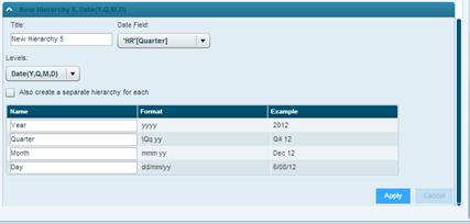 3. In Date Field, select the datetime field from which you want to create a hierarchy.
