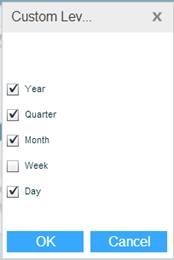 4. In Levels, select the hierarchy level. If you select Custom, you can choose the levels you want from the Custom Levels dialog box.