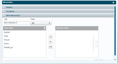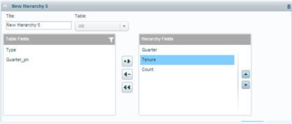 4. In the Table Fields panel click on a field, then click the Add arrow to move it to the Hierarchy Fields panel. In Table Fields, you can filter fields using the Filter