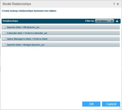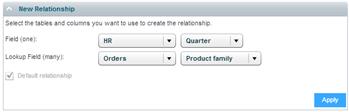 When importing a relational data source (SQL, Oracle), Necto can identify the relationships between tables and create them automatically. For other types of data sources (e.g. Excel) or when there are two types of data sources where one of them is not relational, lookup relationships between tables must be created manually via the Relationship option.