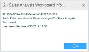 The Info option displays the path and last modification date of a folder or workboard.