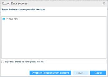 3. If you have administrative credentials, you can export the data source(s) directly to a shared folder. This is useful especially for large data sources. Select the Export to a Shared File option and enter the path.