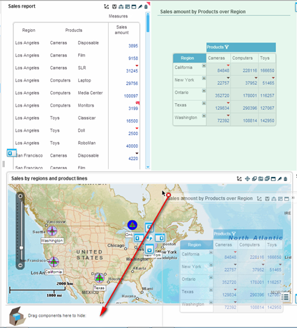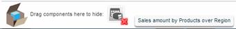 The following example shows the view component “Sales Amount by Products over Region” being dragged to the container.