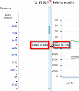 After selecting the Height/Width in Pixels mode, you will see the pixel values while dragging the splitter.