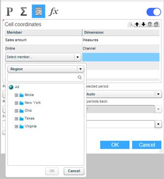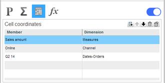 This option enables you to choose a specific data cell by selecting a member from Measures, in addition to members from the relevant dimensions.