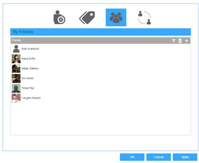 tab is used to select friends. You can also add a user to your list of friends via the Social Ribbon in a workboard.