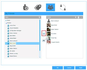 3. Select a user and click the Add arrow to move it to the Friends panel. Repeat this for other friends.