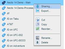 Using the Sharing option from the options menu in the Infographics Pane, you can assign permissions to infographics and to infographics folders.