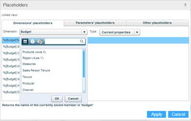1. In the Dimension Placeholders tab, click open the Dimension list.