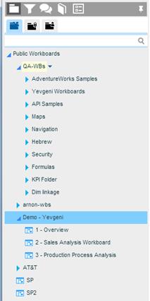 Public and private workboards may be organized in folders. Clicking on a folder expands that folder.