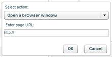 Choose Open a browser window, and in Enter page URL type in the page address.