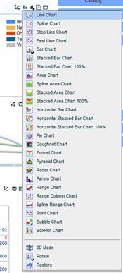 Clicking the Chart button on the title bar of the chart component displays a menu with chart types to choose from, and options that can be applied to this component.