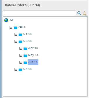 Clicking on a slicer tab displays the dimension’s members in tree format.