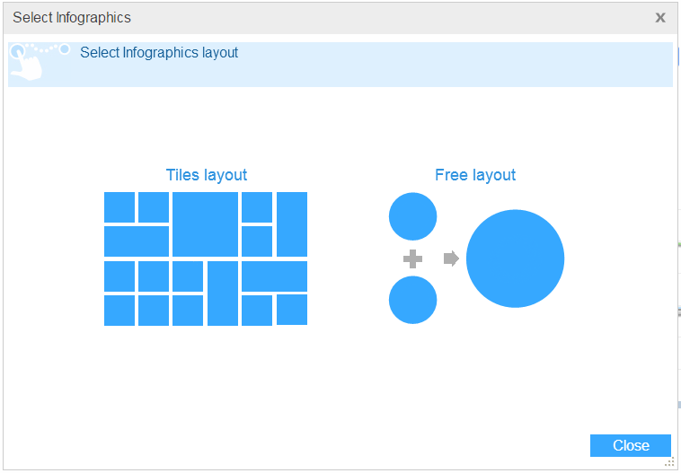· Tiles: the selected infographics entities will be automatically aligned in tile fashion.