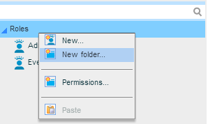 1. In the Roles Pane, click next to the folder under which you want to create a new one. For example, if you want to create a folder under the root Roles, click