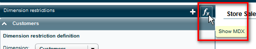 Click the Show MDX button on the Dimension Restrictions panel heading.