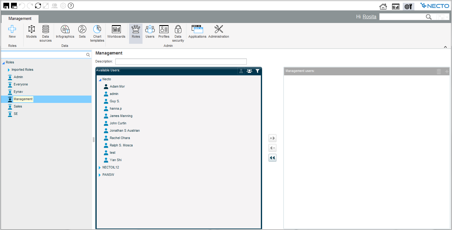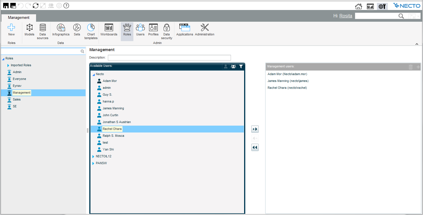 4. In the Available Users panel expand the folder you want. Click on a user and click the Add arrow to move it to the role’s Users panel. Repeat this for each additional user.