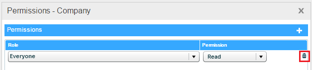 In the Permissions dialog box, click the Delete button for the relevant role.