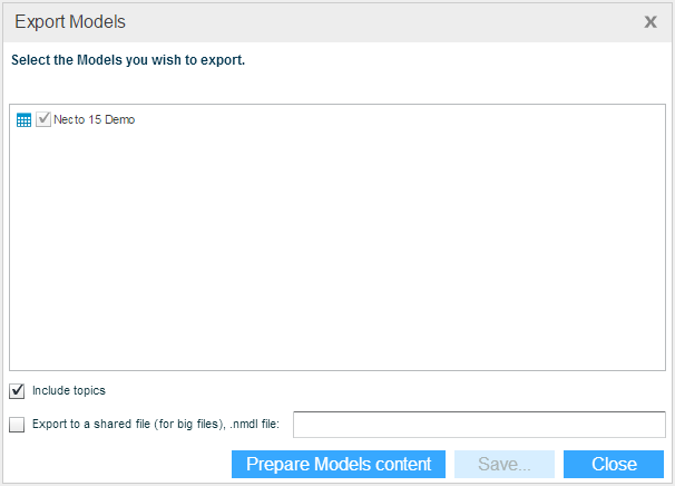 4. If you have administrative credentials, you can export the model(s) directly to a shared folder. This is useful especially for big files. Select the Export to a Shared File option and enter the path.