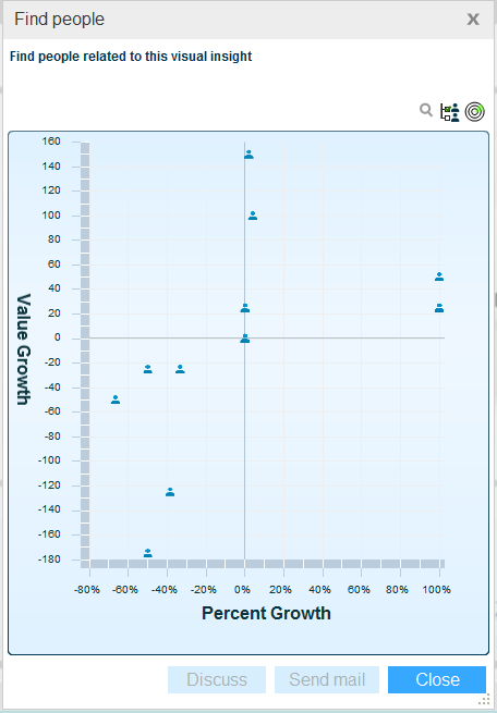 If the data source of the view contains dimensions of “person” type the Find People option can be used to display the people related to the selected insight. Click Find People on the Insights tab of the ribbon to open the Find People dialog box for the selected insight.