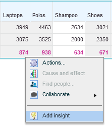 To add an insight for a grid cell, click on it and from the cell menu select Add Insight.