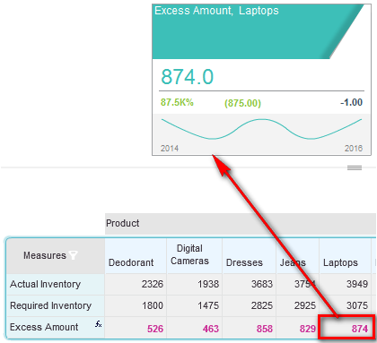 The view component layout changes to insights and grid, and the insight for the selected cell appears above the grid. If revelation or exception based insights were previously displayed, you'll have to remove them by confirming the warning message in order to display the selected insight.