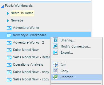 Folders can be reordered within their immediate parent folder. Workboards can be reordered within a folder.