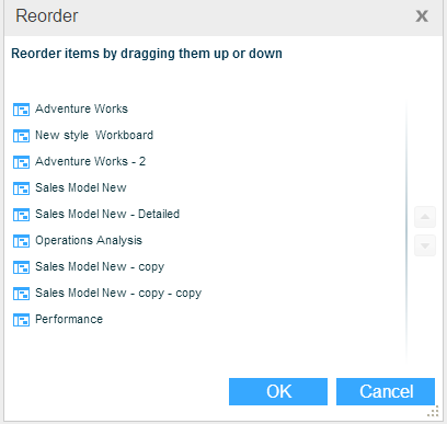 2. In the Reorder dialog box, drag the folder or workboard up or down and drop it to the new position.