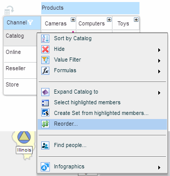 1. Click on a member heading and click Reorder on the Members tab of the ribbon, or select Reorder from the member menu.