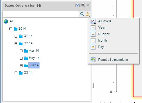 To return the search to all levels, select All Levels in the menu. Selecting Reset All Dimensions returns the search in all the dimensions to All Levels.