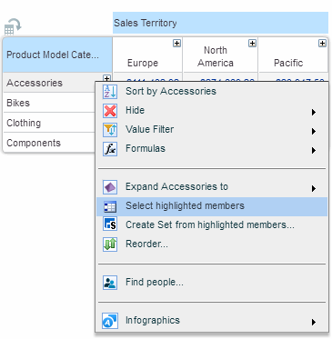 Click on the member heading and click Select Highlighted on the Members tab of the ribbon, or from the member menu select Select highlighted members.
