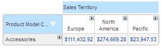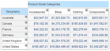 The grid and chart now display only the selected members. A filter icon appears in the heading of the member’s dimension indicating that a member selection has been performed in that dimension.