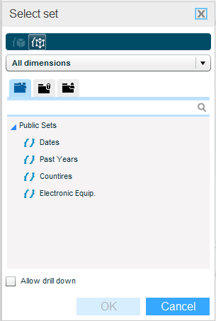 To display the sets defined for a specific dimension, select it from the dropdown list at the top.
