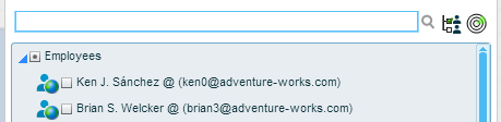 At the top of the Find People dialog box is a search box for searching people in the list. Necto dynamically presents the possible matches as you type in a search term in this box.
