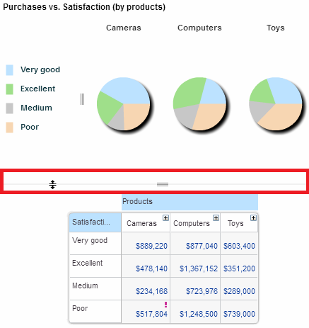 When both the grid and the chart are displayed, you can resize these areas by dragging the boundary between them.