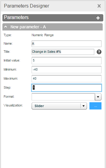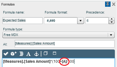 Define an MDX formula to calculate the expected sales as a result of a change in sales. Define the change percentage as a parameter and insert it in the MDX statement. Users can use the navigation control to choose a possible change percentage in sales and view the results in the Expected Sales formula member in the grid.