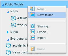 Models are organized in a tree structure (like files and folders). Using the New Folder option, you can create subfolders under Public and Private models.