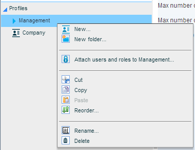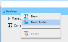 Profiles can be organized in a tree structure (like files and folders). Using the New Folder option, you can create folders and subfolders under the root Profiles folder.