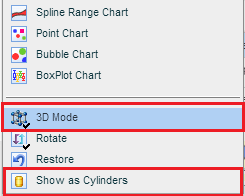 The Show As Cylinders option is available for some of the chart types and it displays the chart as cylinders.