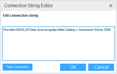 Edit the string and click Test Connection to test the connection. The system indicates whether or not the connection is working.