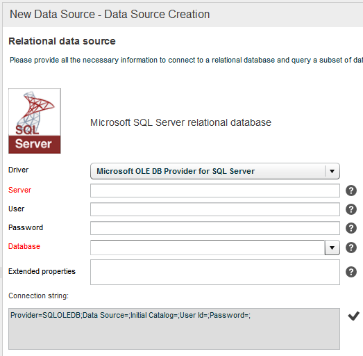 When you choose SQL Server or another dynamic database such as SQL Azure, you can create a data source from a relational database.