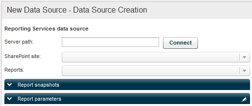 When you select the Reporting Services option, you can create a data source from a Reporting Services report.